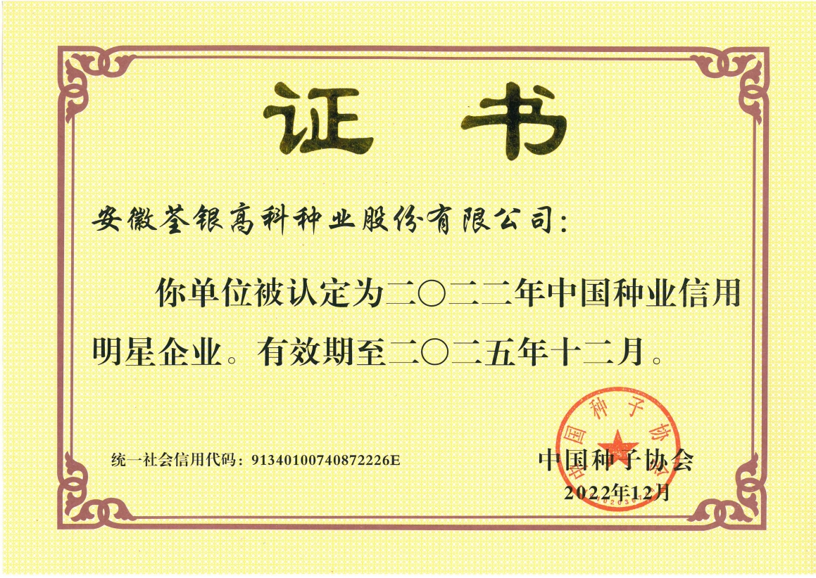 安徽荃銀高科種業(yè)股份有限公司是一家“以種業(yè)為核心、農(nóng)業(yè)服務(wù)為延伸、探索和創(chuàng)新農(nóng)業(yè)多元化發(fā)展”的現(xiàn)代高科技種業(yè)上市公司,證券代碼:300087。公司注冊資金9.47億元,系“中國種業(yè)領(lǐng)軍企業(yè)、農(nóng)業(yè)產(chǎn)業(yè)化國家重點龍頭企業(yè)、國家高新技術(shù)企業(yè)、農(nóng)業(yè)部首批農(nóng)作物種子育繁推一體化企業(yè)、中國種業(yè)信用明星企業(yè)"。在國內(nèi)控股子公司20多家,在國外設(shè)立分支機構(gòu)4家,良種銷售至全國20多個省(市、區(qū)),出口覆蓋20多個國家與地區(qū),種業(yè)綜合實力、雜交水稻研發(fā)、推廣及海外業(yè)務(wù)規(guī)模均居全國種子企業(yè)前2位。